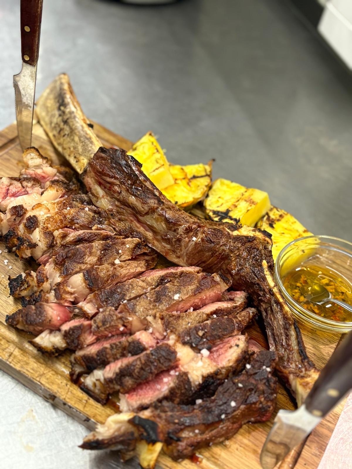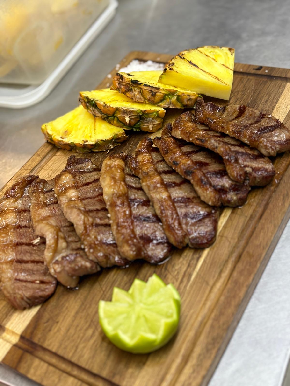 Chef’s Steak – 17.00 (Slice of entrecotte approx. 300g, grilled pineapple with chimichurri sauce)