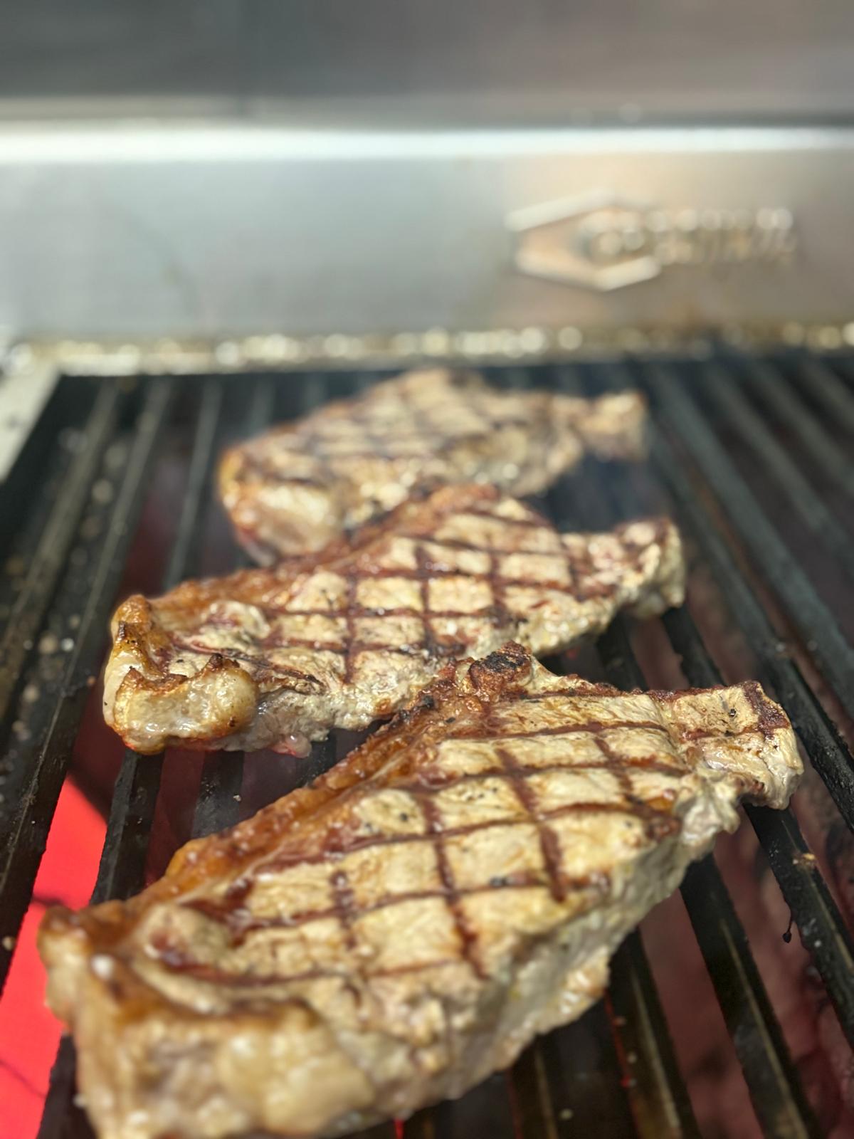 Sirloin Steak with Garlic – 16,00 (Sirloin steak with approx. 350g drizzled with olive oil and garlic)